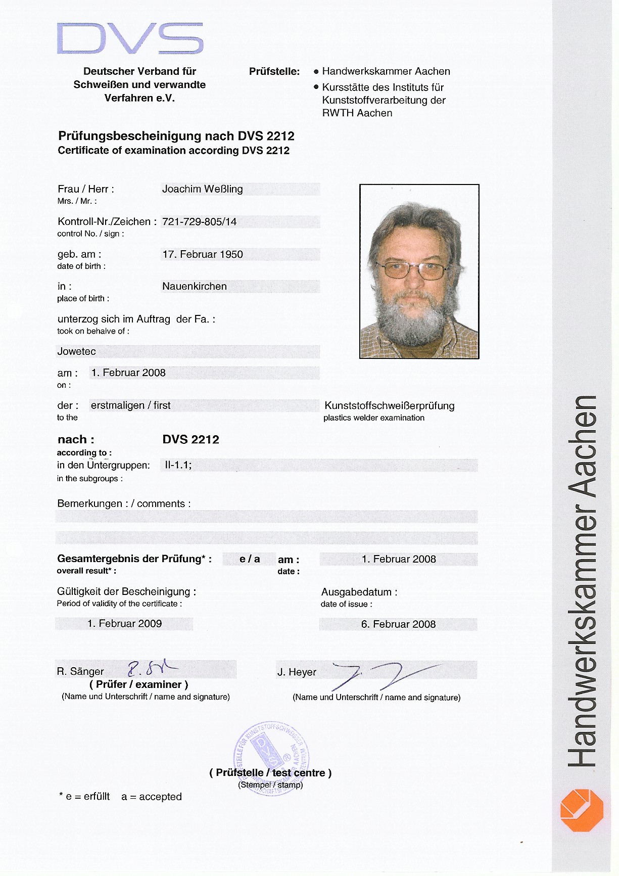 Kunststoffschweißer nach DVS 2212