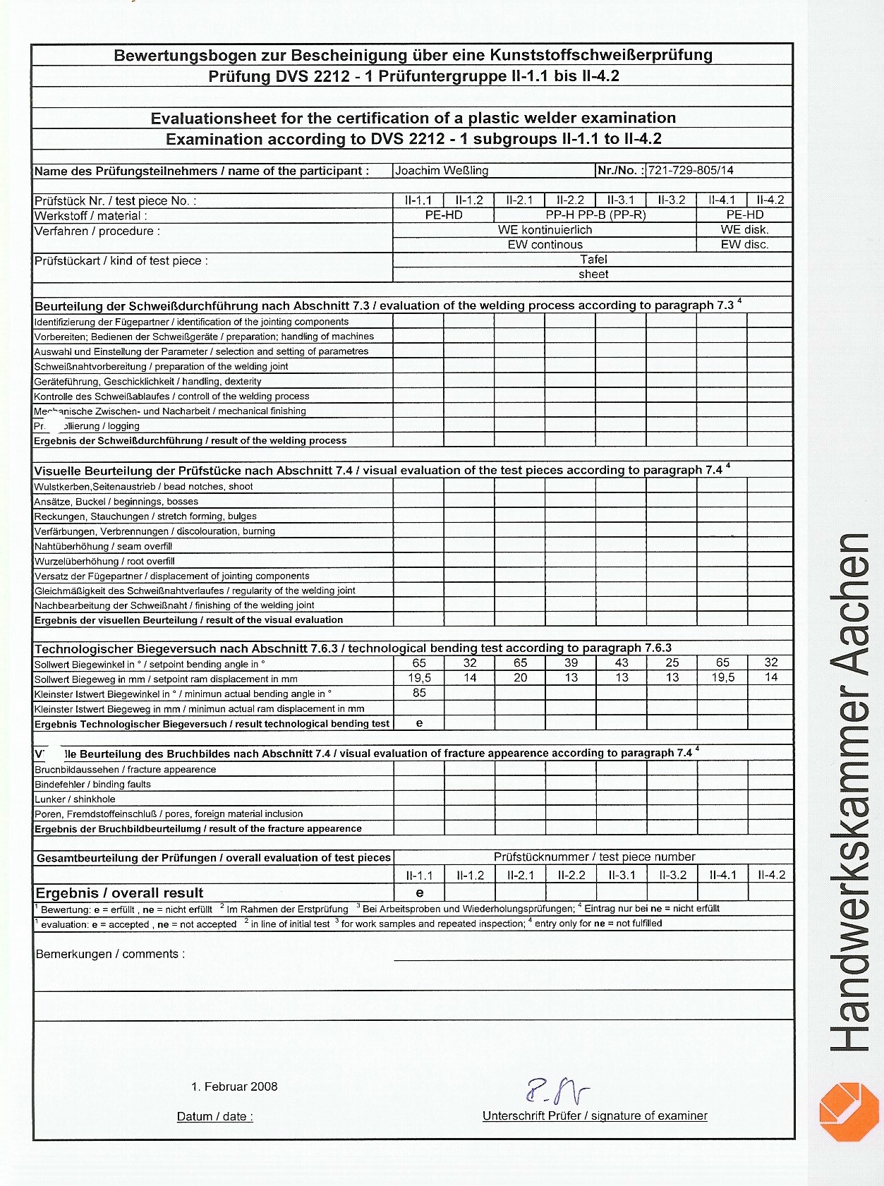 Rückseite der Prüfbescheinigung
